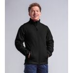 97% polyester/3% elastane outer. Showerproof and windproof. Shaped fit. Full length zip with chin guard and inner zip guard. Two front zip pockets. Tear release adjustable cuffs.
