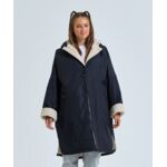 Unisex. Oversized. Full-length two-way plastic zip with easy pull toggles. Chin guard. Oversized fit. Side vents. Adjustable cuffs with hook and loop fastening. Side zip pockets. Inside pocket with zip on the left side. Inside patch pocket on the right side. 3-panelled hood. Loop on the centre back of the jacket for hanging the robe. Dropped back hemline. (5000/5000 waterproof and windproof). Embroidery access to the back and chest area can be accessed through here. Waterproof taped seamed outer layer. Sherpa fleece interior. Rebrandable stuff sack carry bag with double drawstring straps. CE Class 1 Certified.